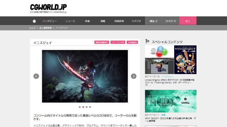 CG WORLD.JPに「3DCGアーティスト求人情報」が掲載されました!