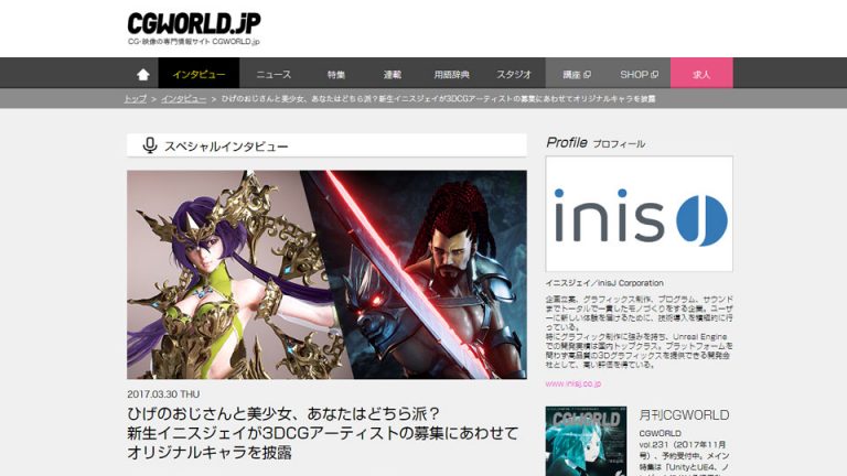 CG WORLD.JPにインタビュー記事が掲載されました!